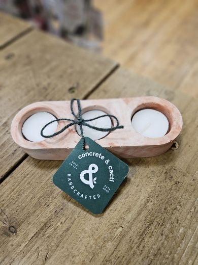 Candle Holder: Concrete Handmade Trio of Tealights - Rose Marble - Concrete & Cacti