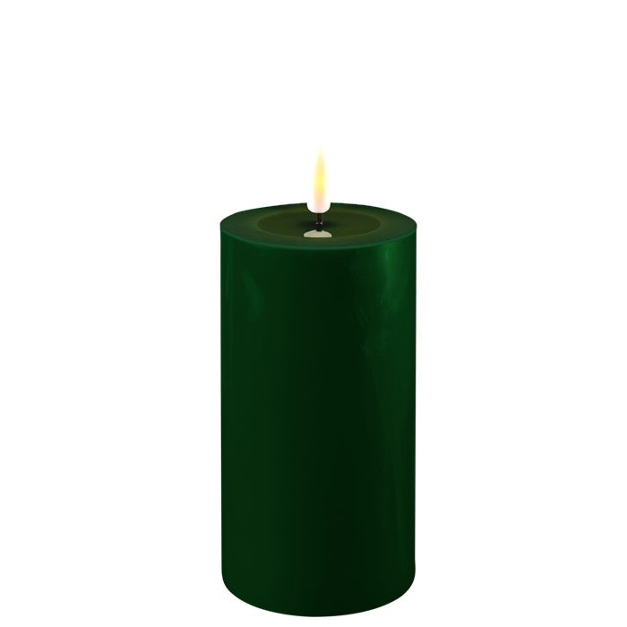 Led Candle: Real Wax Flame Effect 7.5 x 15cm - Dark Green