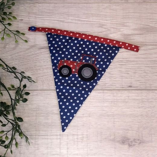 Personalised Letter Bunting Flag: Fabric Triangle Boys Spot Star Plain Tractor - Dark Blue