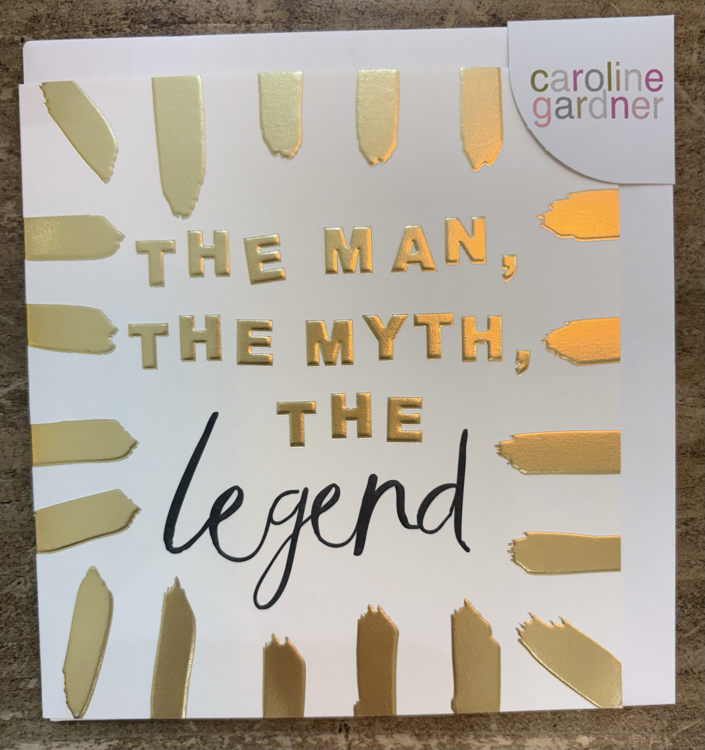 Male Birthday Card: Legend with Gold Burst Border Embossed GOLD FOIL - Caroline Gardner