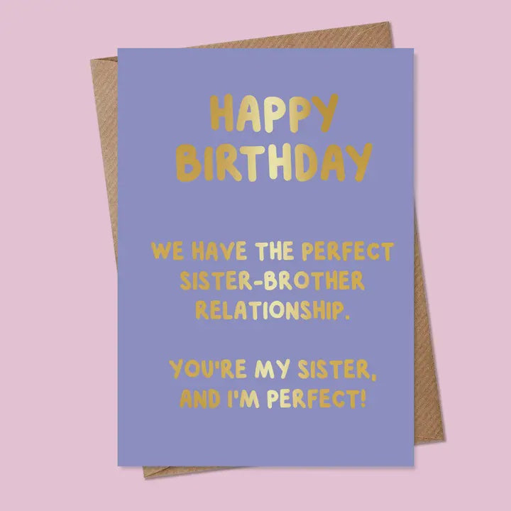 Birthday Card: We Have the Perfect Sister-Brother Relationship. You're my Sister, and I'm Perfect! - MarcoLooks