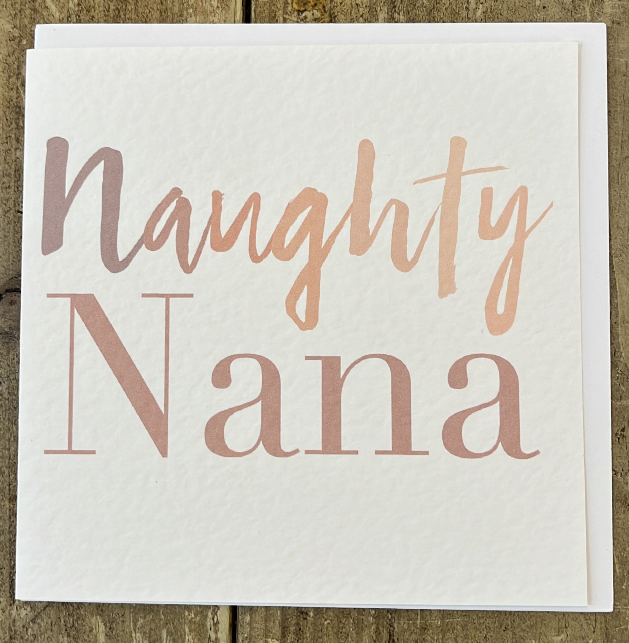 Nana Card: Naughty Nana Blush Pink Handmade in UK - White - Jola Designs