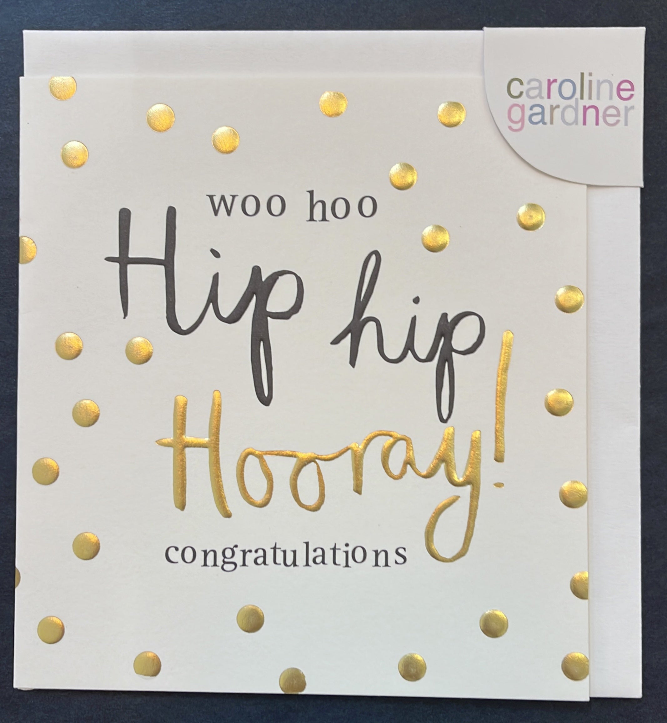 Well Done Card: Gold Foil Hey You Congratulations Card - Hip Hip Hooray - Caroline Gardner - Dimensions: H146 x W140mm