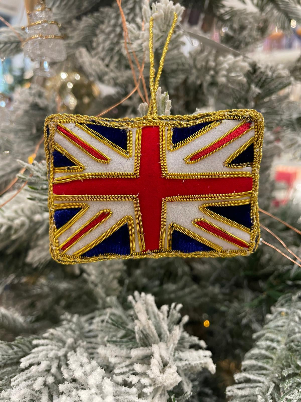 Elevate your festive décor with this exquisite hand-finished Union Jack pillow tree ornament, meticulously crafted from sumptuous padded velvet and adorned with intricate beading. Each piece showcases rich red and gold tones that capture the magic of Christmas, making it a standout addition to any tree. The artisanal hand-finishing ensures no two decorations are identical, giving your home a touch of bespoke luxury. Perfect for those who appreciate quality craftsmanship and timeless holiday elegance.