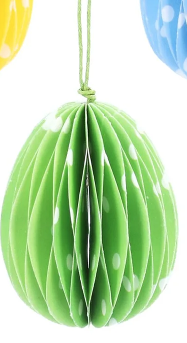 Easter Hanging Dec: Paper Honeycomb Spotty Egg - Green - Gisela Graham