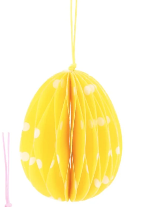 Easter Hanging Dec: Paper Honeycomb Spotty Egg - Yellow - Gisela Graham