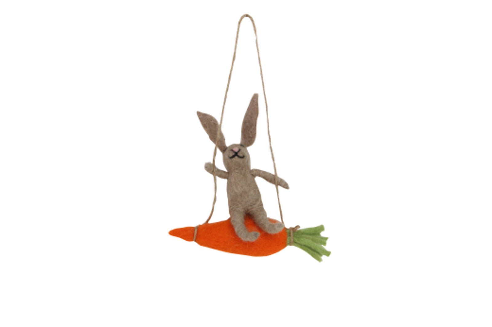 Hanging Wool Bunny on a Carrot Swing