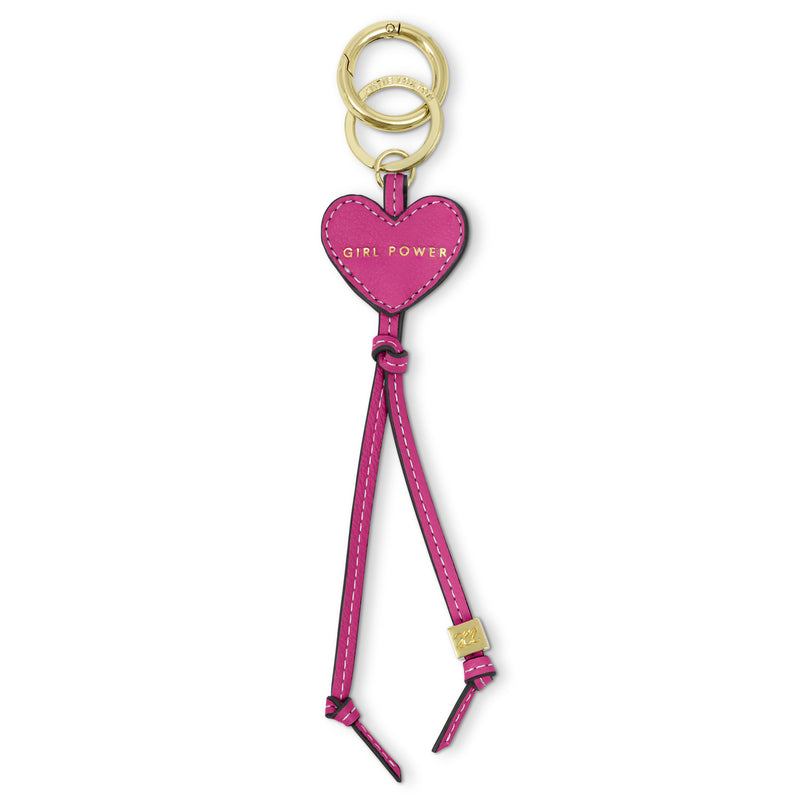 Keyring: Heart Bag Charm Soft Vegan Leather GIRL POWER - Fuchsia - Katie Loxton