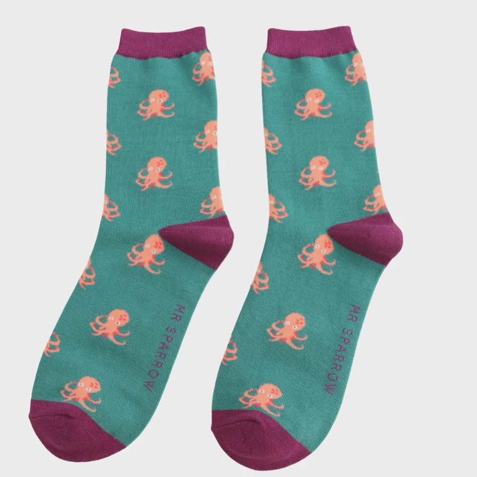 Mens Socks: Bamboo Little Octopus - Green - Mr Sparrow