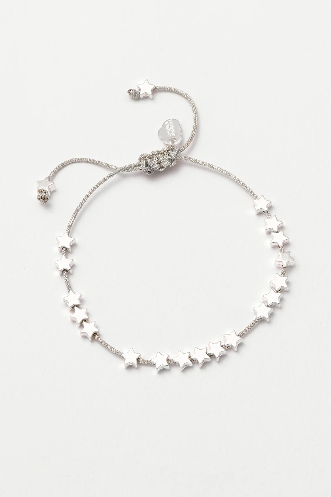 Keep starry eyed with this beautiful friendship bracelet made of silver plated stars, which are threaded through a grey cord.