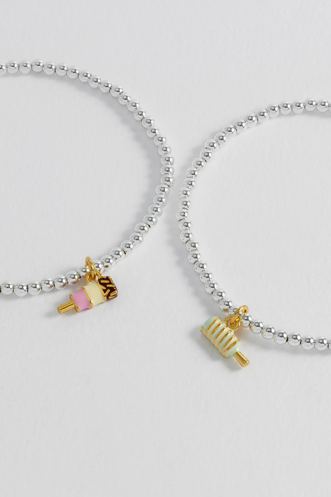 Add a playful touch to your look with our Ice Cream Stretch Bracelet. Featuring a detailed ice cream charm, paired with silver-plated beads on our classic Sienna stretch design, this fun piece brings a sweet, whimsical flair to any outfit—almost too tempting to resist!