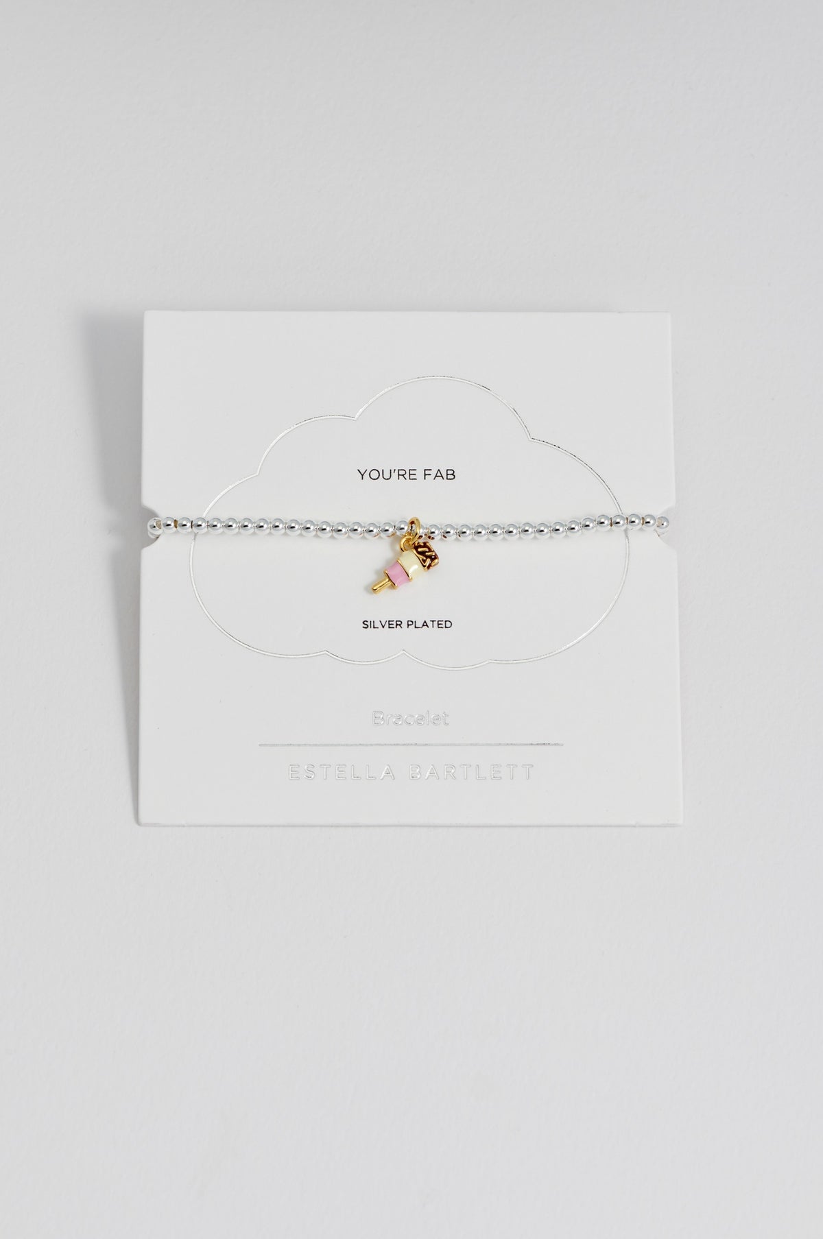 Bracelet on Message Card: Lolly YOU'RE FAB - Silver Plated - Estella Bartlett