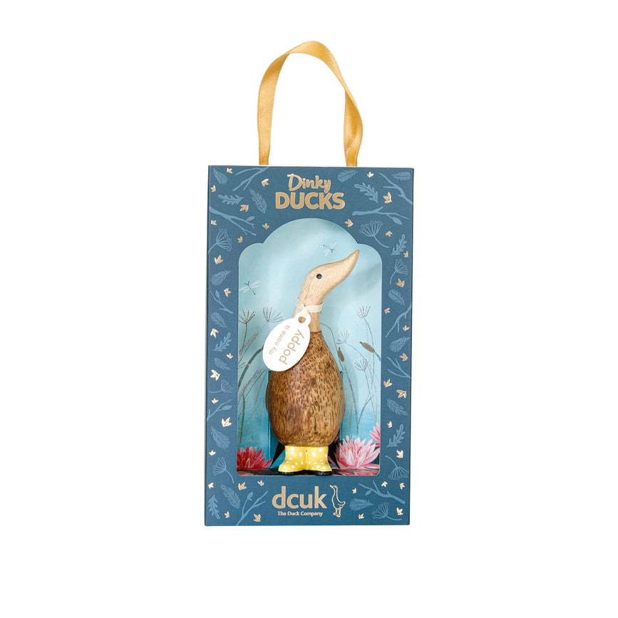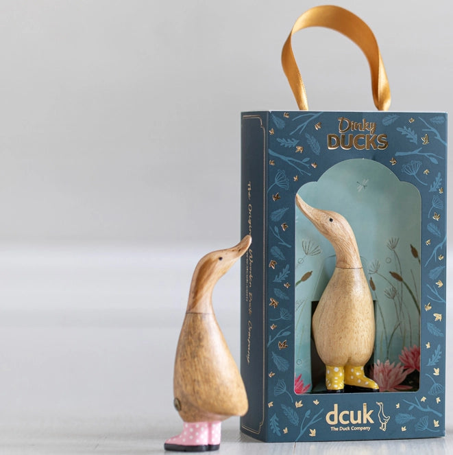Delightfully dinky and ready for rain, our Dinky Ducks in spotty boots don't want to miss out on those lovely puddles.