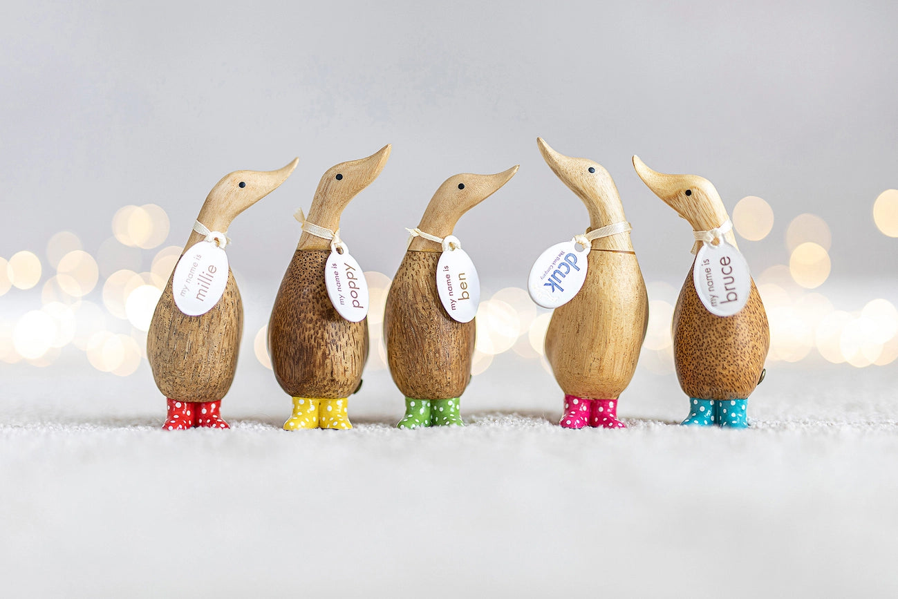 Bamboo Carved Duck With Spotty Boots In Box By Dcuk