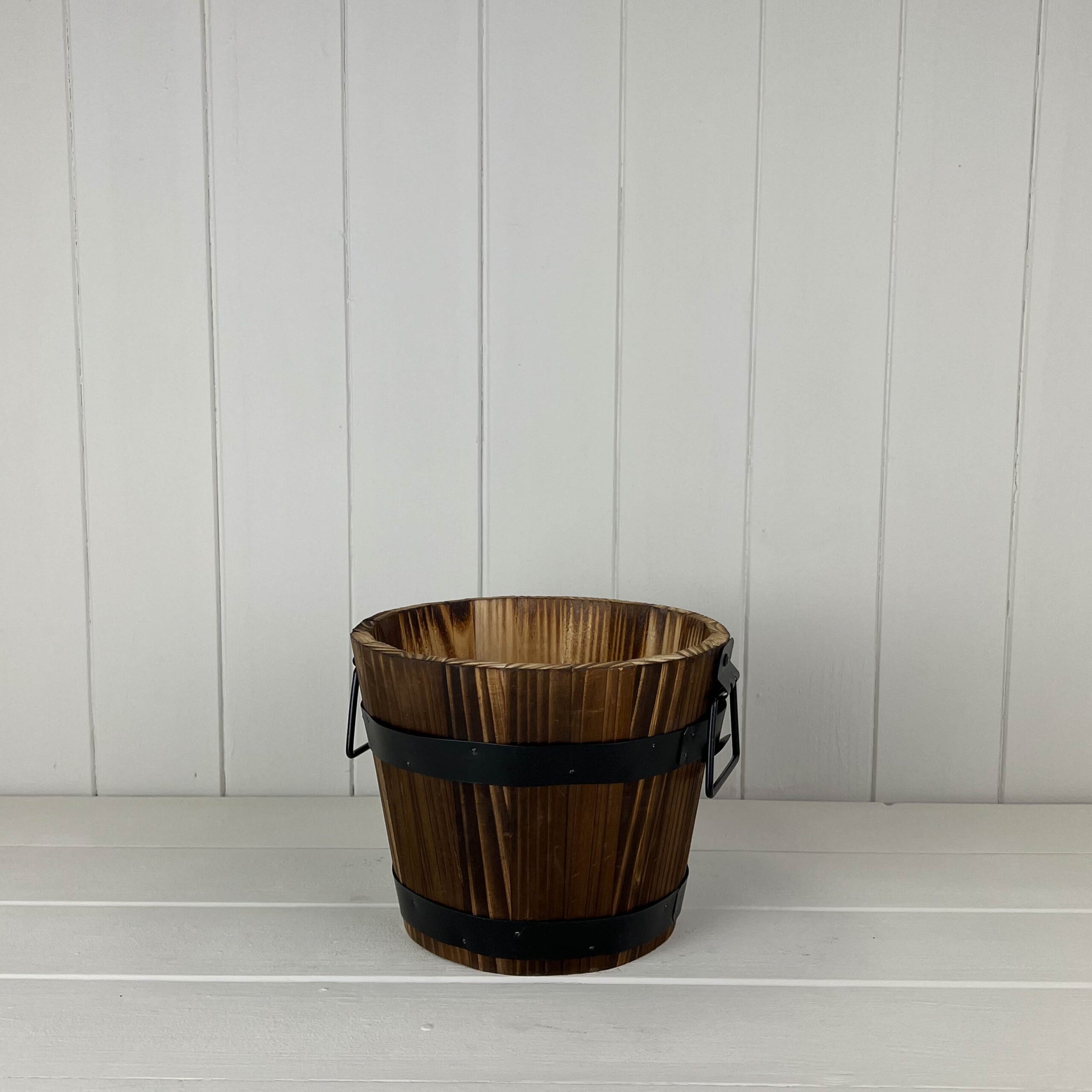 Planter Pot: Wood Barrel Round Lined Handles Small - Natural