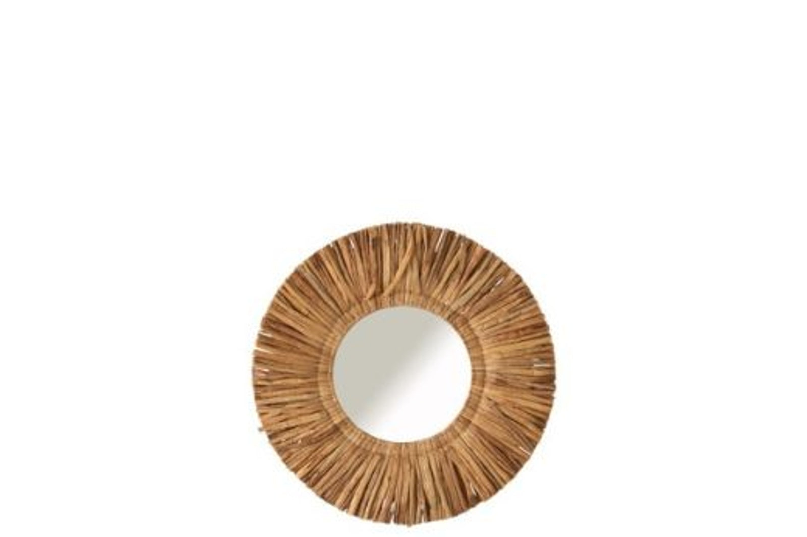 A beautiful circular mirror crafted from natural reeds in an attractive design.