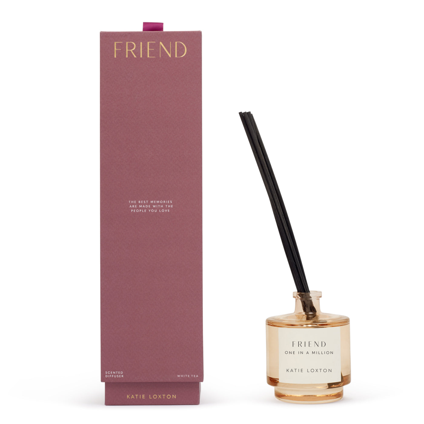 Diffuser: Coloured Glass Bottle 100ml FRIEND English Pear & White Tea - Dark Pink Box - Katie Loxton