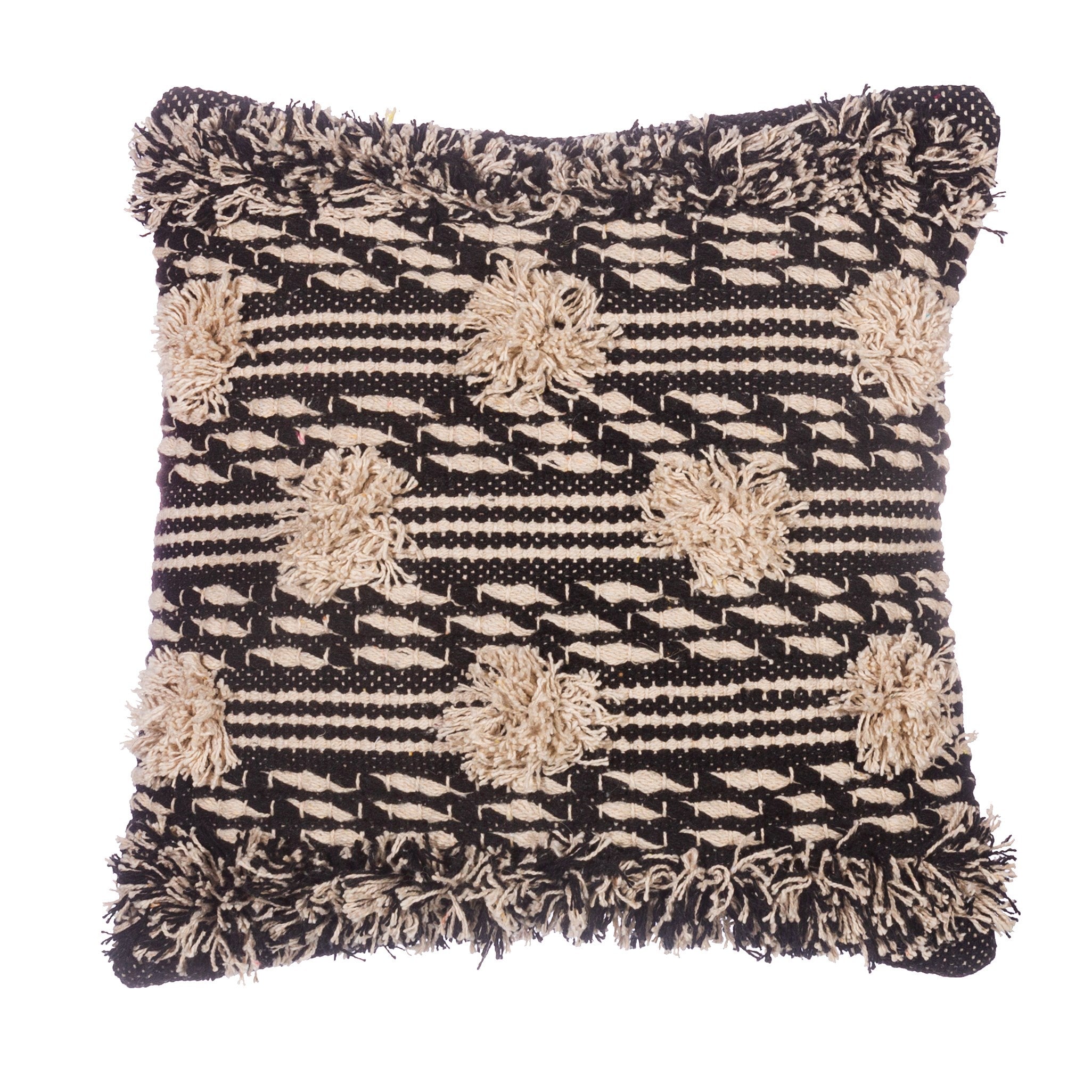 Cushion: Cotton Bohemian Tuffed Dot - Black & White - Sass & Belle