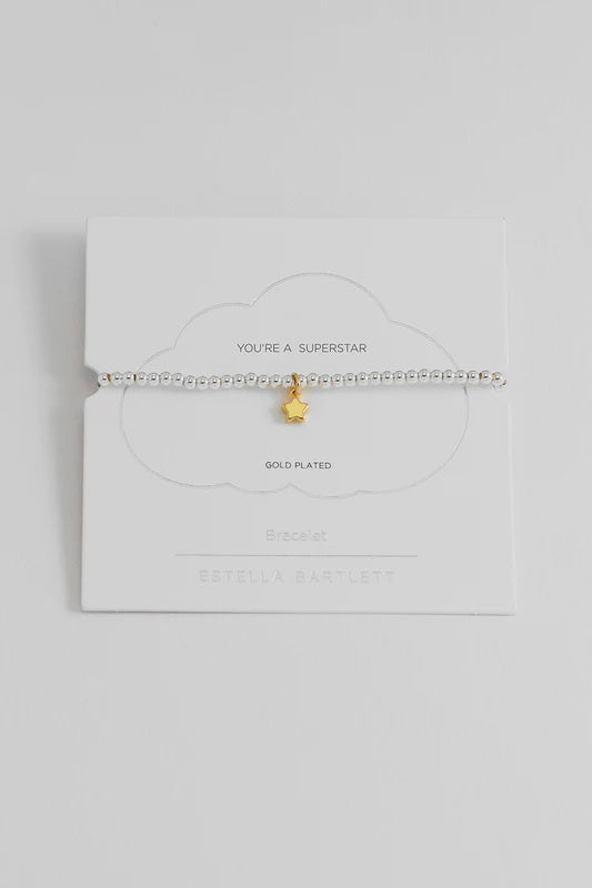 Bracelet on Message Card: Beaded Puffy Star YOU'RE A SUPERSTAR - Gold Plated - Estella Bartlett