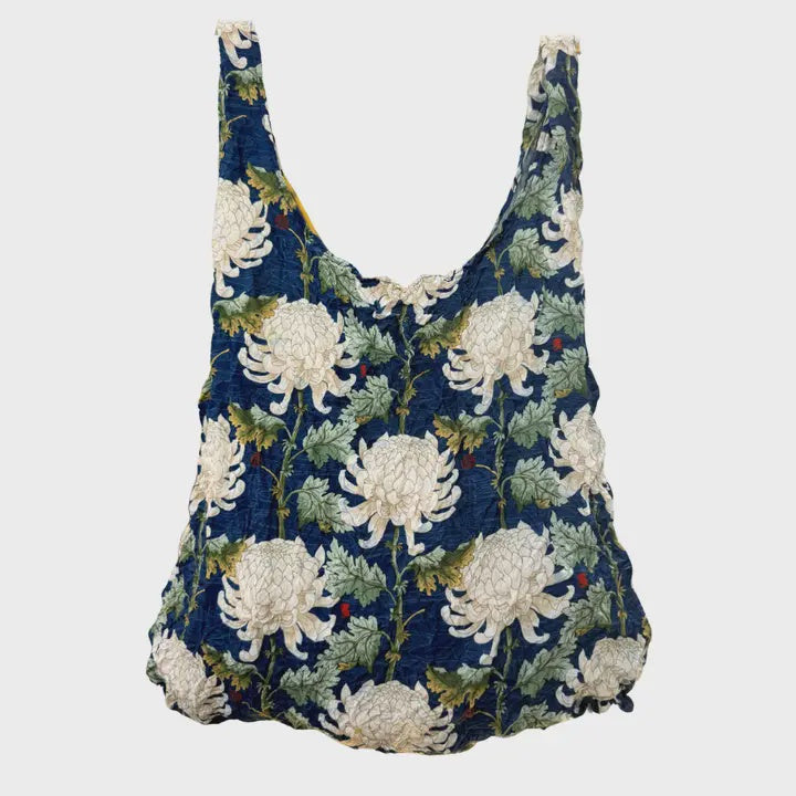 Reusable Shopping Bag: Crinkle Floral Chrysanthemum Expandable - Blue - My Little Eco Bag