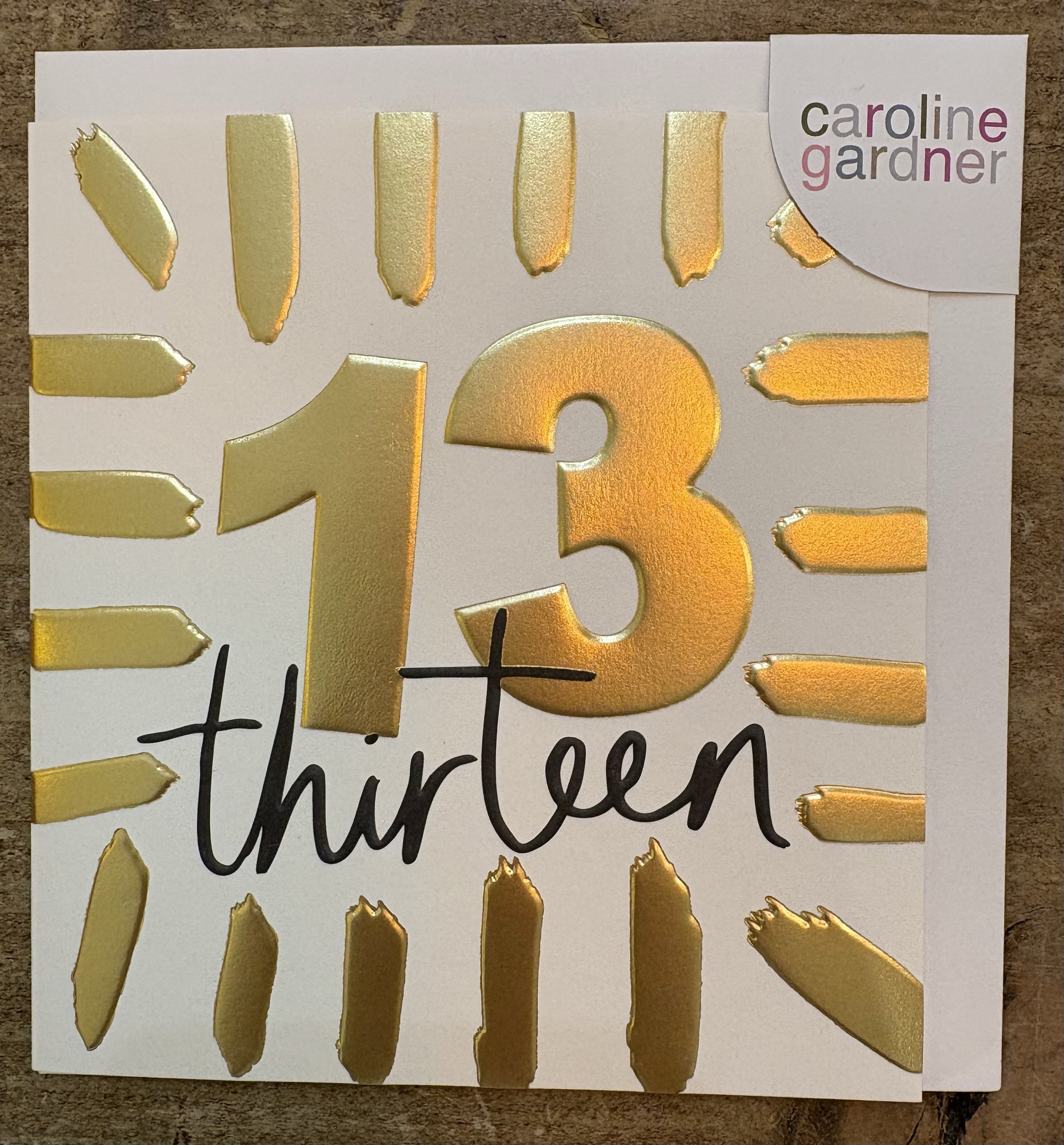 Age Birthday Card: GOLD FOIL Gold Thirteen With Border Embossed - Caroline Gardner