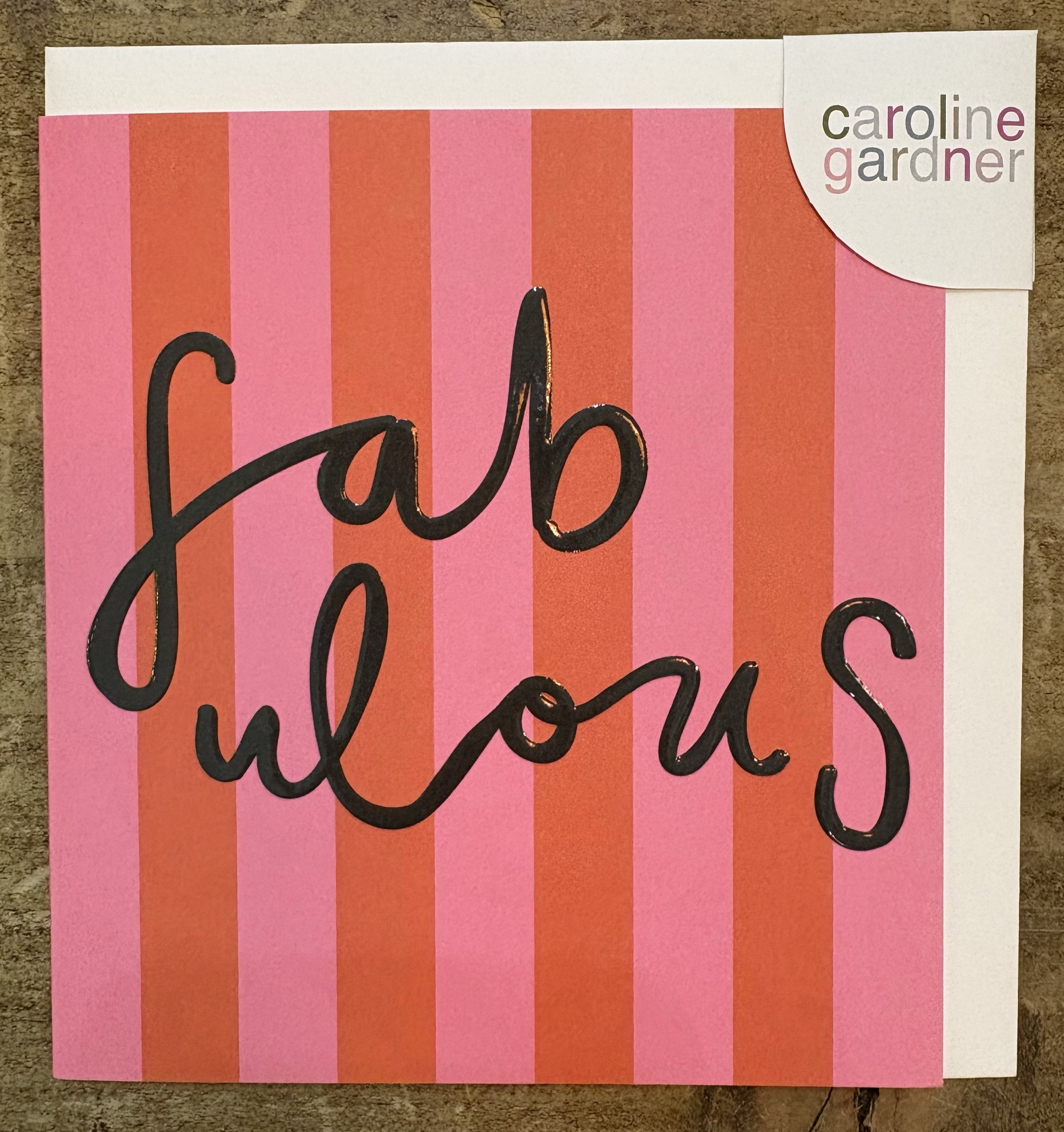 Birthday Card: Fabulous Pink And Red Stripe Embossed - Caroline Gardner - Stripe', is a bold, colourful range inspired by interior trends for painted stripe walls, striped cushions and graphic wall art. Paired with oversized, hand drawn captions, this eye-catching range really makes a statement. Featuring spot uv and embossed finishes supplied with a white envelope. Dimensions: H146 x W140mm