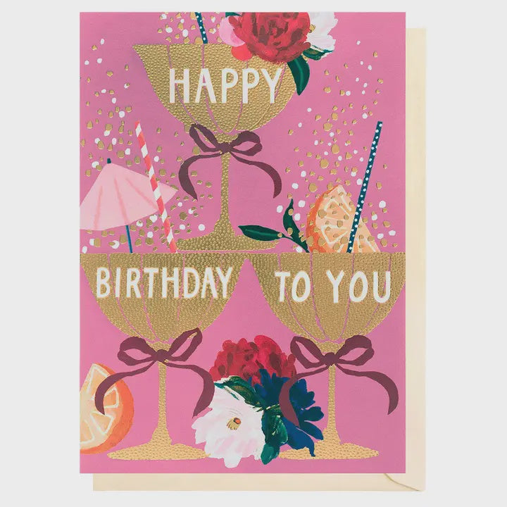 Birthday Card: Golden Cocktails GOLD FOIL - Louise Tiler