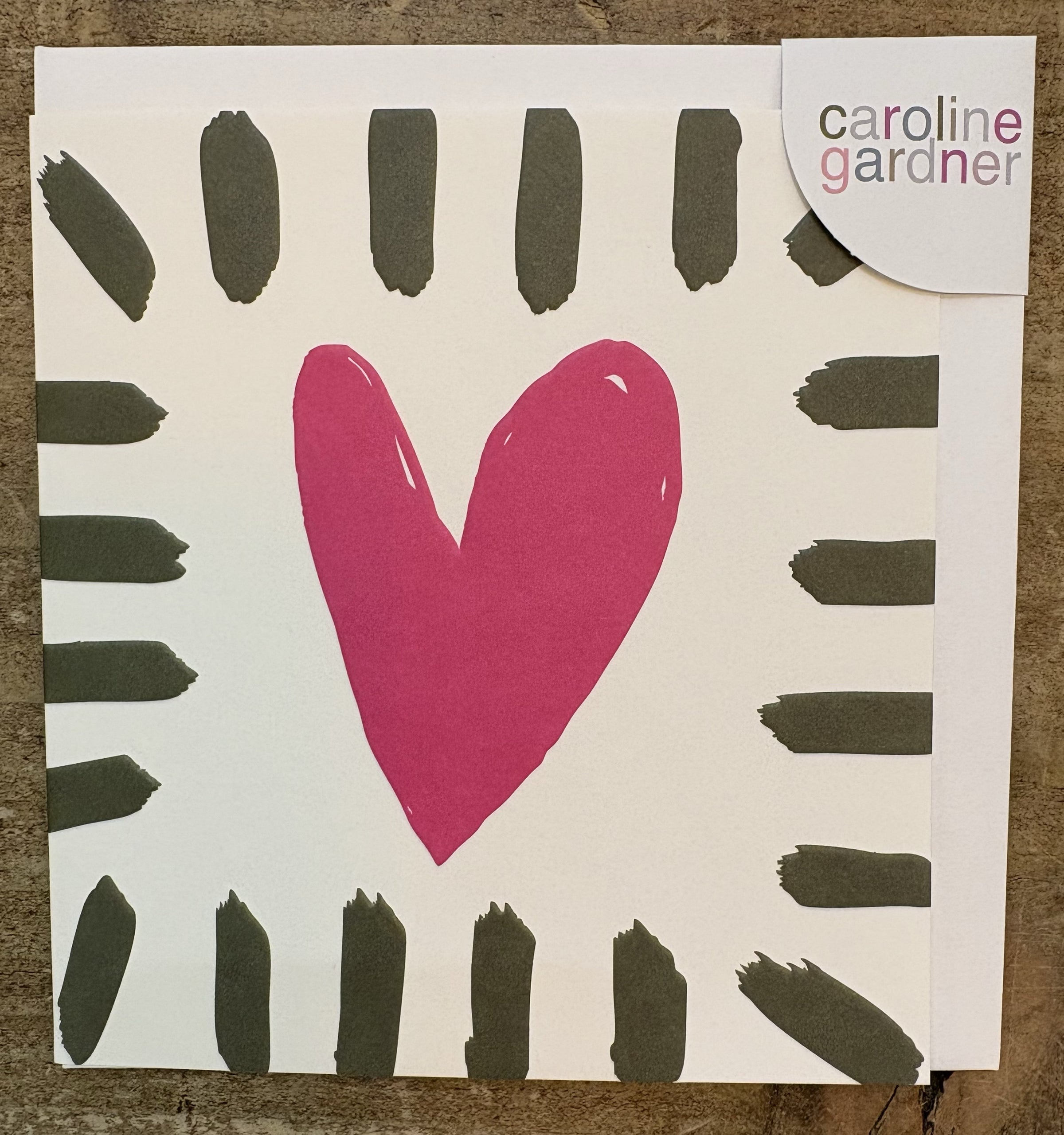 Blank Card: GOLD FOIL Green Brushtrokes Border Embossed - Caroline Gardner - Colourful and bold borders are paired with fun, illustrative icons in our new 'Border' range. Features hints of gold foil and embossed finishes, supplied with a kraft envelope. Dimensions: H146 x W140mm