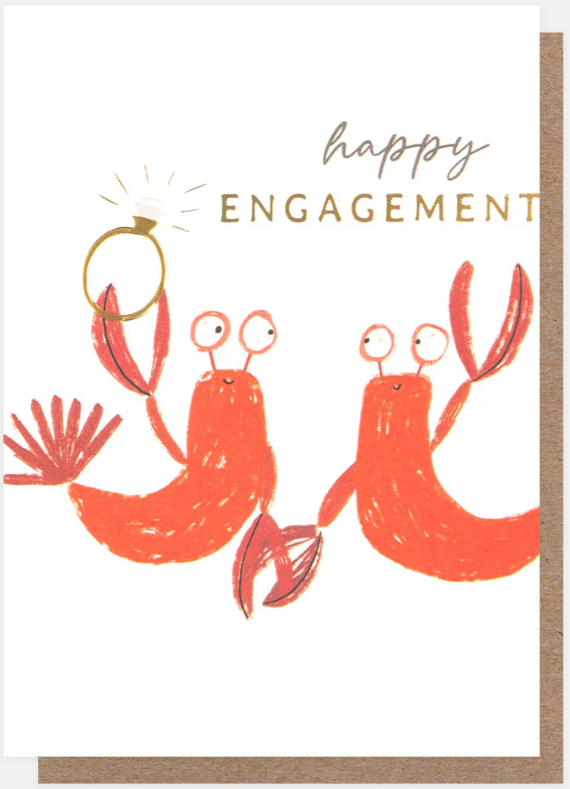 Engagement Card: GOLD FOIL Lobsters with Ring Embossed - Caroline Gardner - Our 'Cheers' range features key captions in a fun CG colour palette with gold foil and embossed finishes. Dimensions: H146 x W140mm