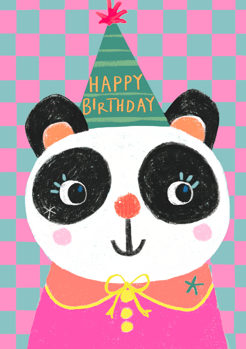 Kids Birthday Card: BRIGHT COLOURFUL PARTY HAT PANDA - Paper Salad - Dimensions: