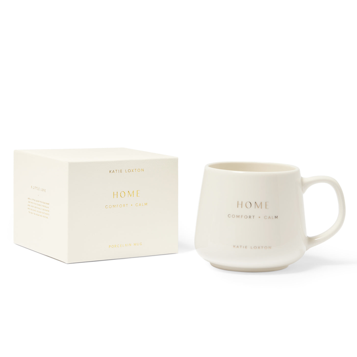 Mug: Porcelain Home Boxed Gold Lettering - White - Katie Loxton - Dimensions: