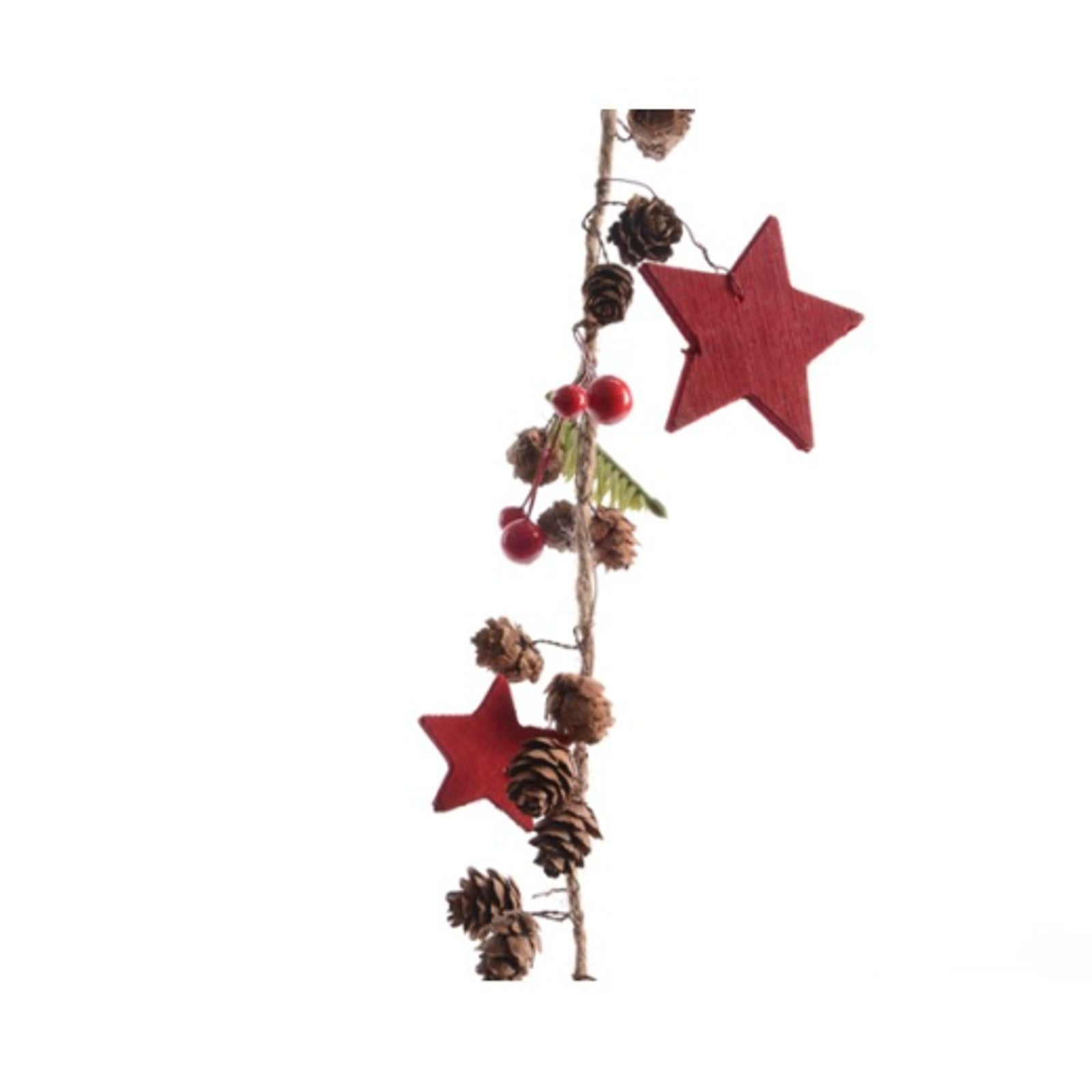Christmas Garland: Pine Cone 1.2m Long Red Star - Natural