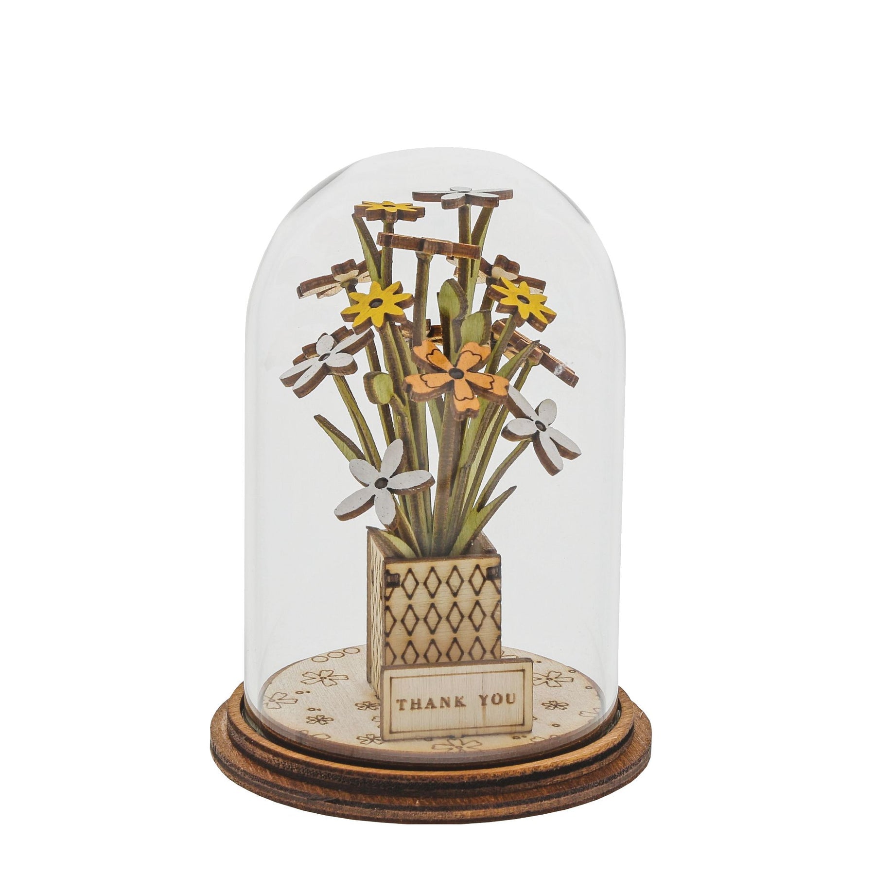 Ornament: Glass Dome Wood THANK YOU FLOWER FIGURINE - Kloche