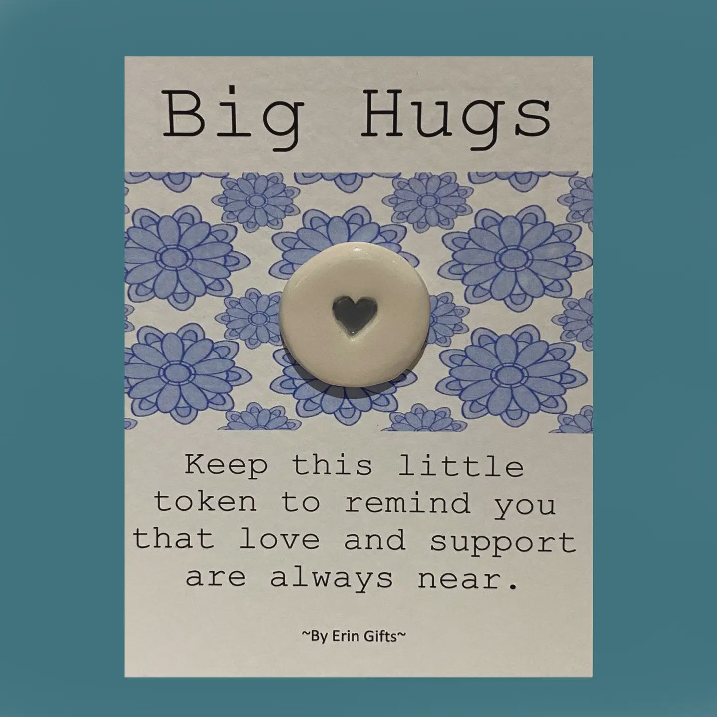 Token: Ceramic Pocket Wish Token - Big Hugs - White - By Erin Cards & Gifts