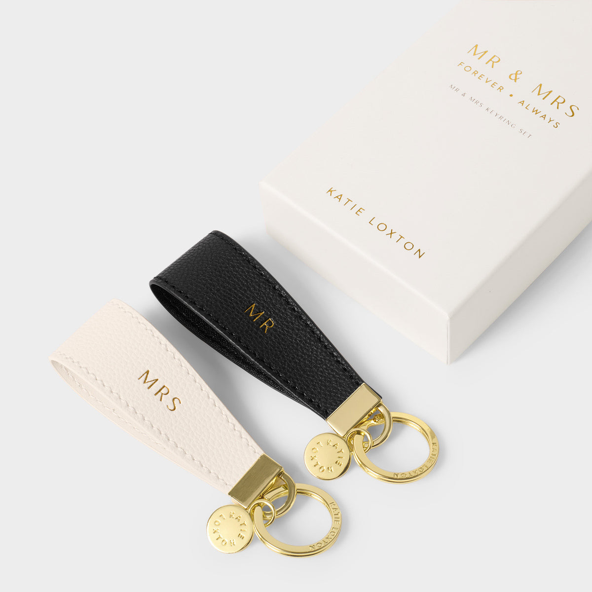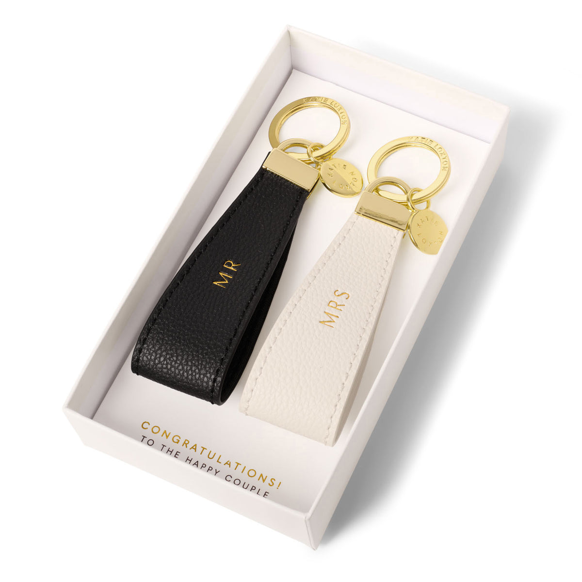 Keyring Set: MR & MRS Boxed - Off White and Black - Katie Loxton