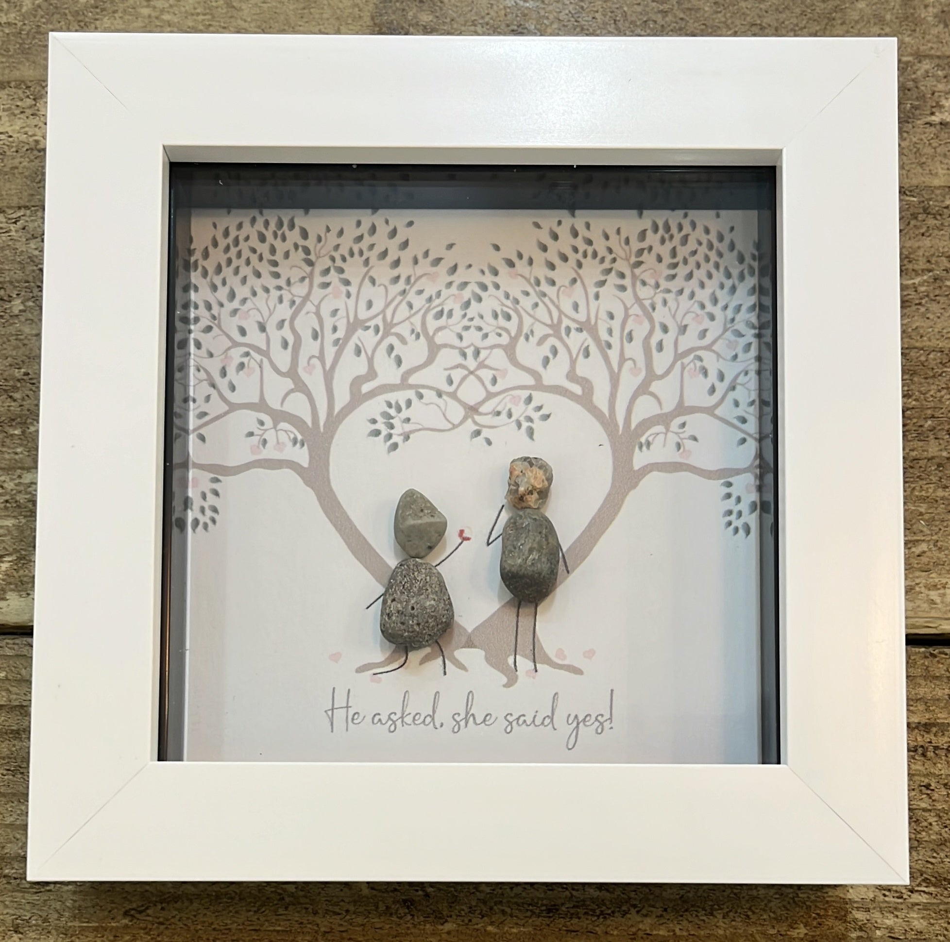 Pebble Picture: Engagement He asked, She said Yes - White Box Frame - La de Da Living