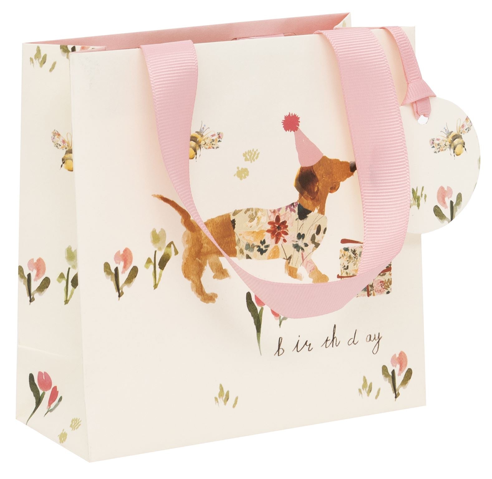 Gift Bag: Small Sausage Dog Birthday - Cream & Pink - Glick - Dimensions:140W x 140H x 60D MM