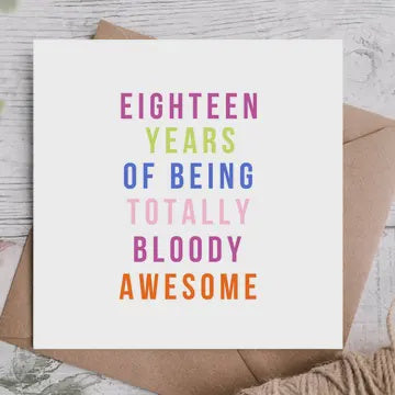 Age 18th Card: Eighteen Awesome - Multicolour - Highgrove Cards
