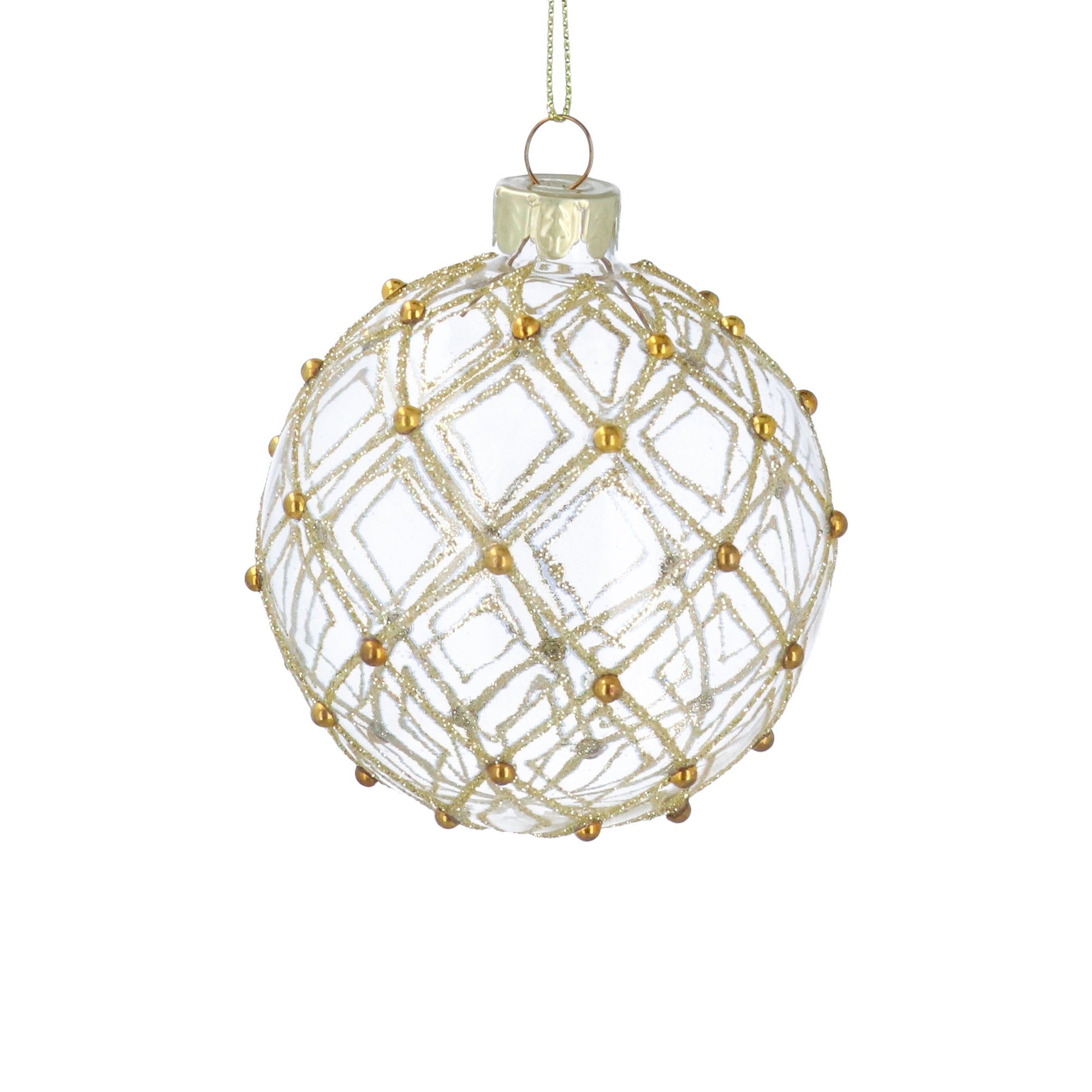 Christmas Hanging Dec: Glass Bauble Gold Glitter Trellis 8cm - Clear - Gisela Graham - Gisela Graham's 2025 Christmas collection does not disspoint, decorate your home with unique pieces to celebrate the festive season. Dimensions: (LxWxD) 8x8x8cm