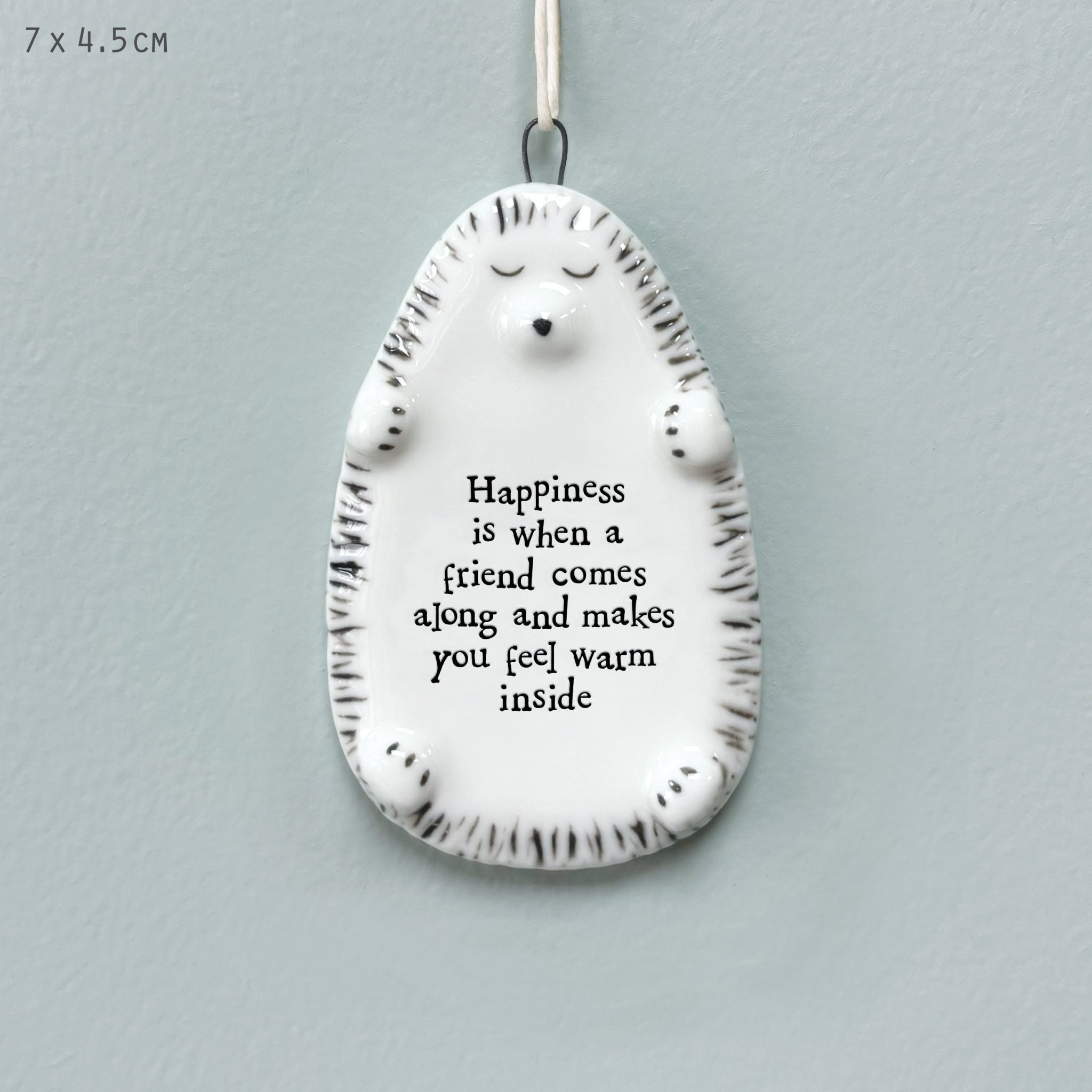 Hanging Dec: Porcelain Hedgehog Happiness Is When A Friend Comes Along - White - East of India